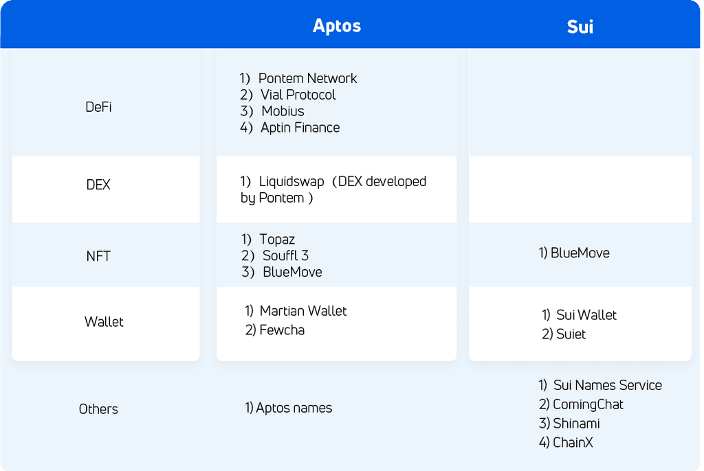 ● Aptos is far ahead of Sui in terms of its ecosystem development and development progress.