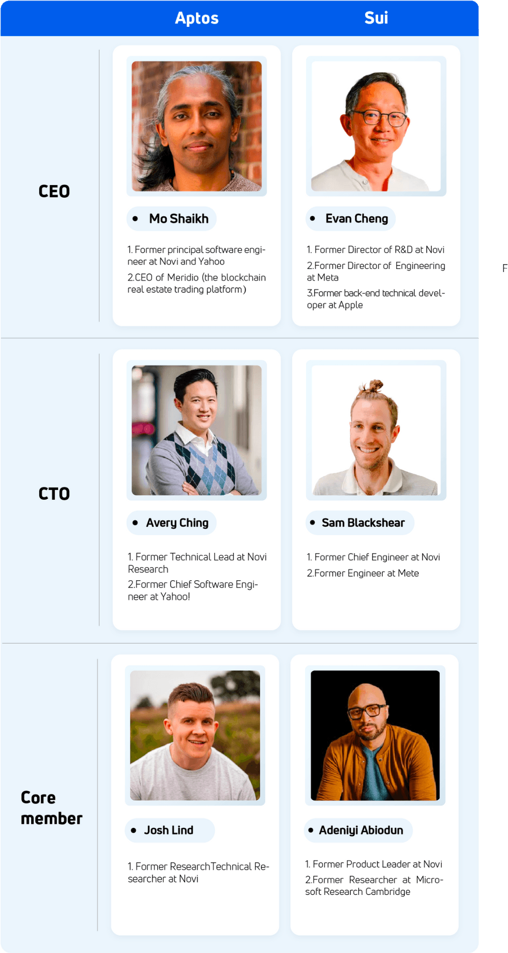 Most of the Aptos and Sui core members are from Novi and Diem of Meta. Blockchain veterans working together make it easy for Aptos and Sui to rise so quickly.