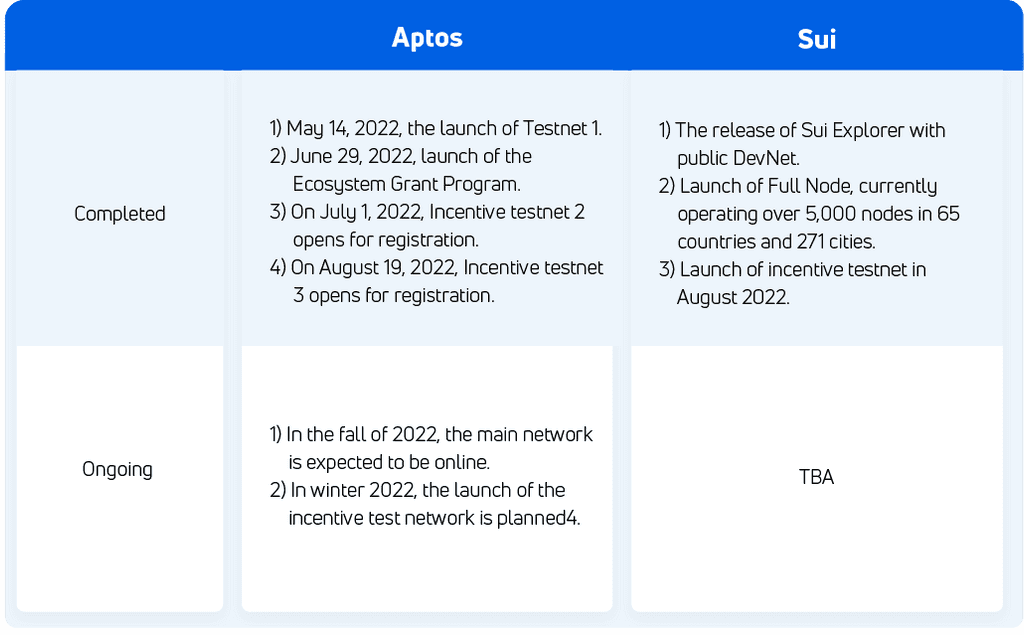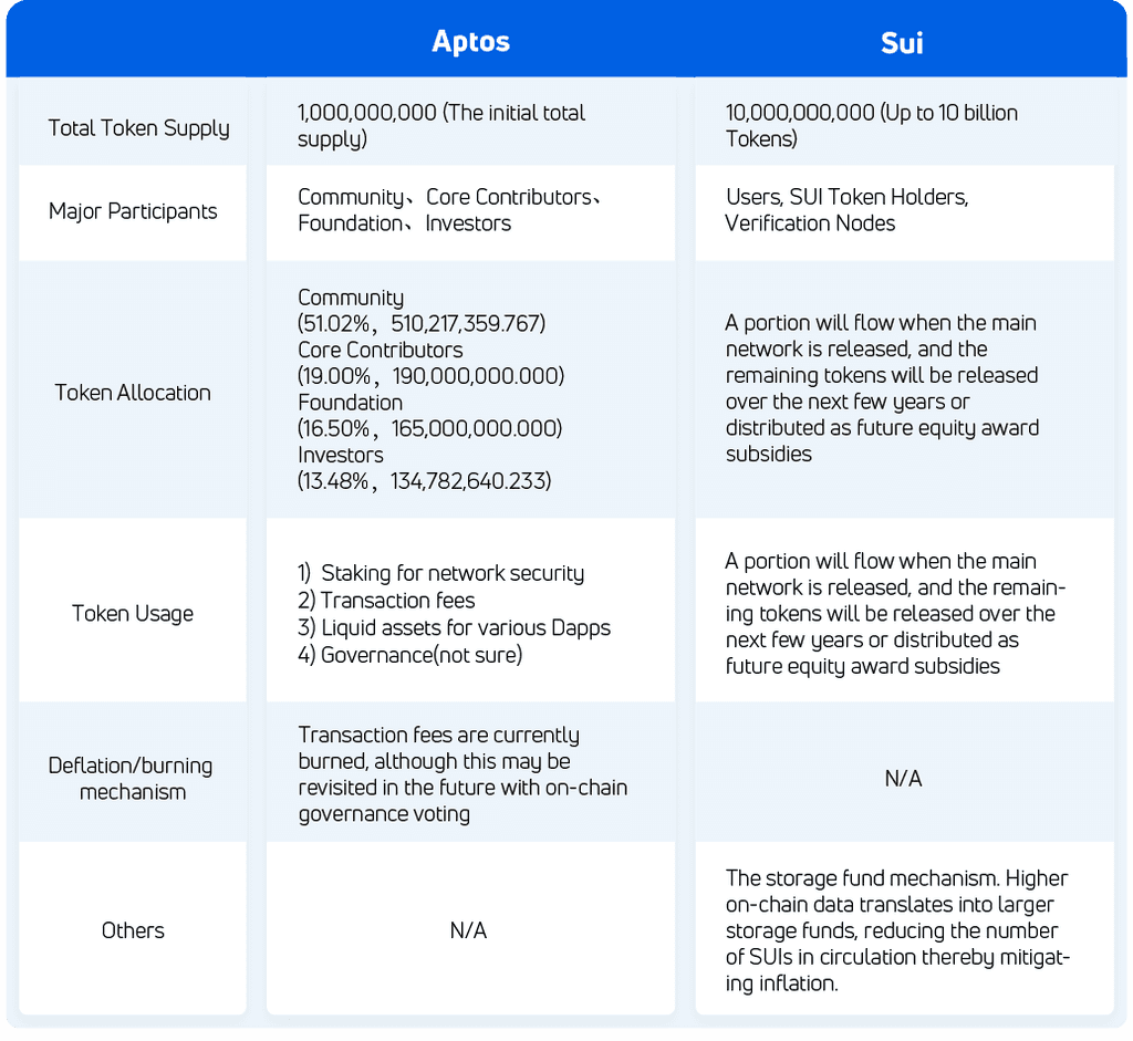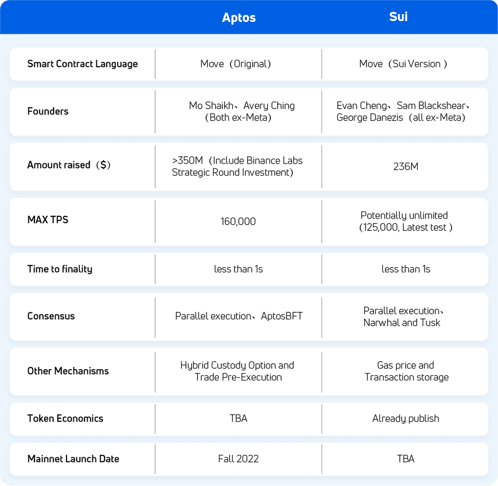 (Data Source:1.https://aptoslabs.medium.com/2.https://medium.com/mysten-labs)