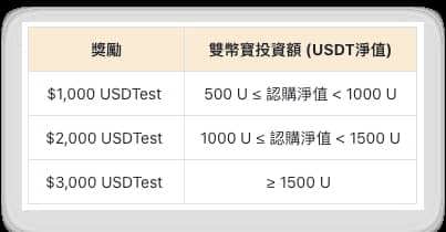 在活动期间完成目标的用户,即可获得奖励,最高享 $3,000 USDTest