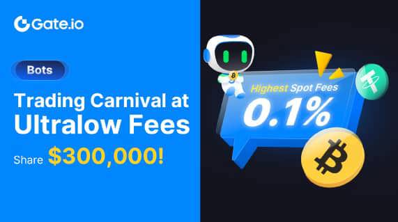 ·January 30 - March 01, Gate.io Bots Trading Carnival: Spot Trading Fees Slashed by 50%! $300,000 Mega Cash Prizes Empower Trading at Ultralow Fees !