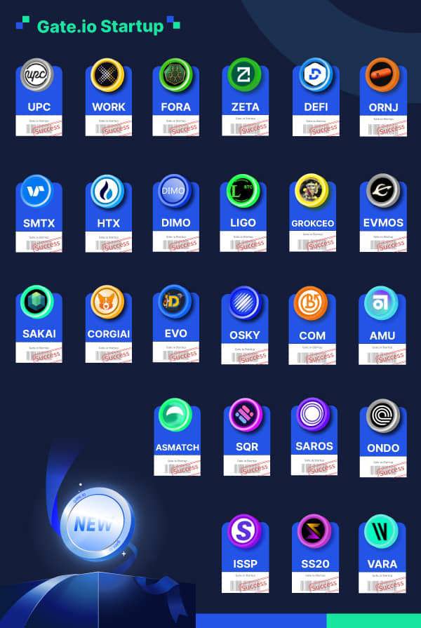 From January 16 to January 31, Gate.io listed many projects on our Startup platform, including UPC, WORK, FORA, ZETA, DEFI, ORNJ, SMTX,HTX, DIMO, LIGO, GROKCEO, EVMOS, SAKAI, CORGIAI, EVO, OSKY, COM, AMU, ASMATCH, SQR, SAROS, ONDO, ISSP, SS20, VARA. Gate.io Startup is a token launch platform for innovative & advanced projects.