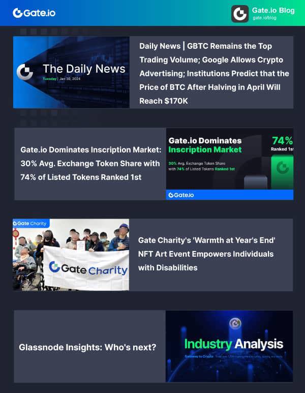 From January 16 to January 31, we released a number of blog articles:Daily News | GBTC Remains the Top Trading Volume; Google Allows Crypto Advertising; Institutions Predict that the Price of BTC After Halving in April Will Reach $170K
