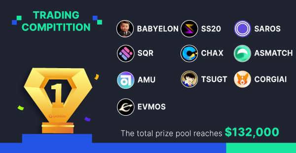 From January 16 to January 31, we held 10 trading competitions, including BABYELON, SS20, SAROS, SQR, CHAX, ASMATCH, AMU, TSUGT, CORGIAI, EVMOS. The total prize pool is $132,000.