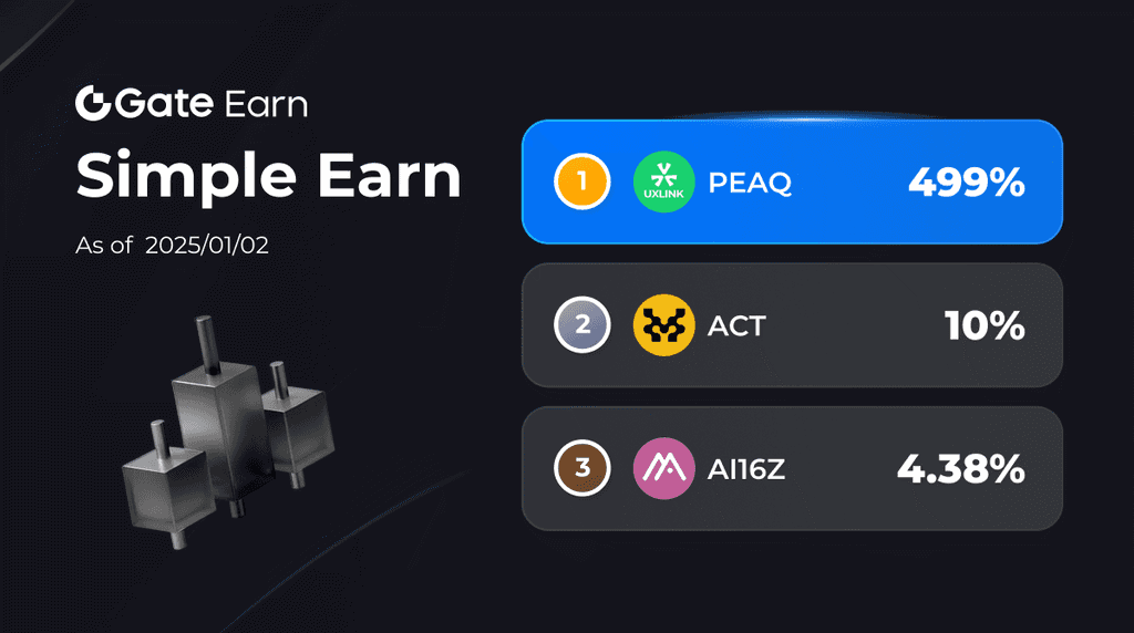 Gate.io 余币宝支持 PEAQ、ACT、AI16Z 借出,当前年化收益率达 499%,借款比例触及 100%!