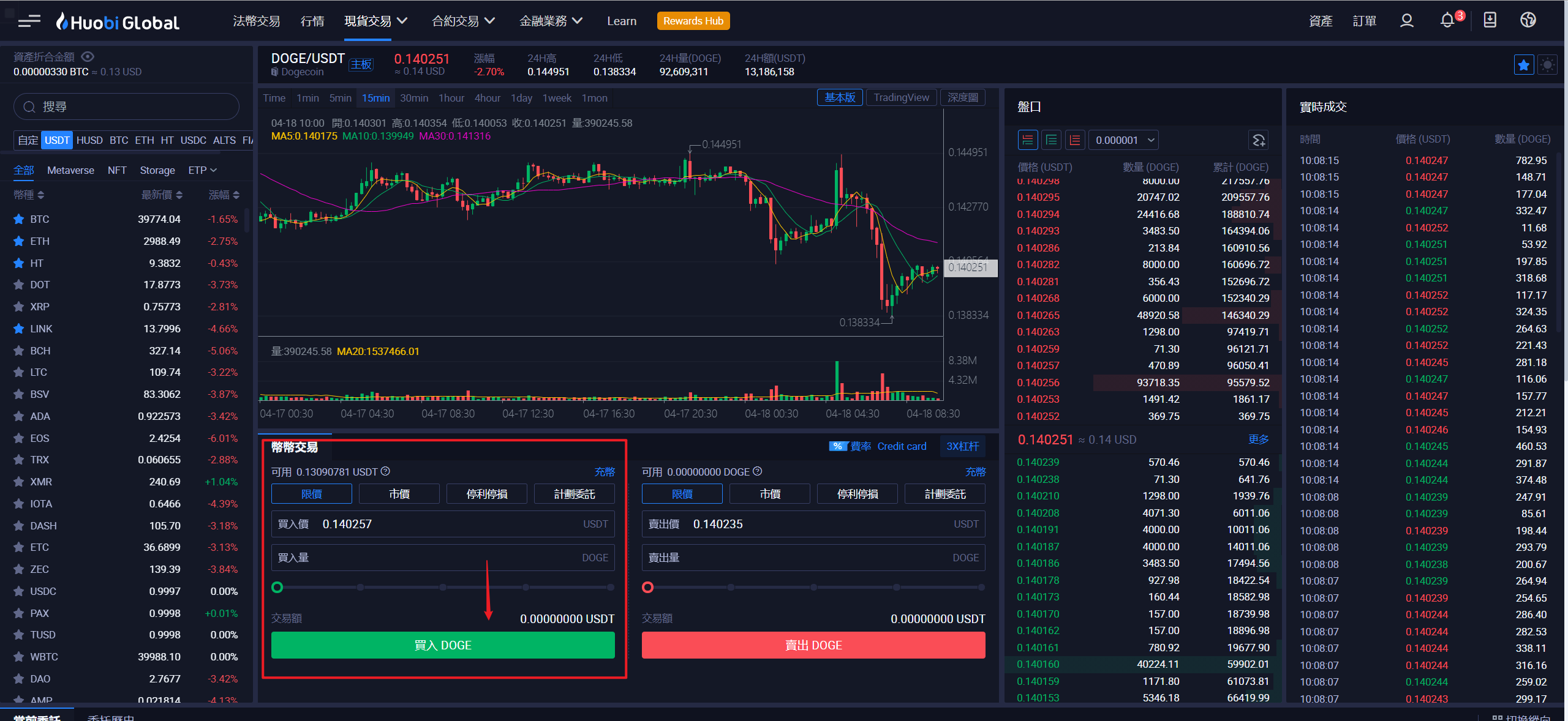 (2)币币交易买入对应币种