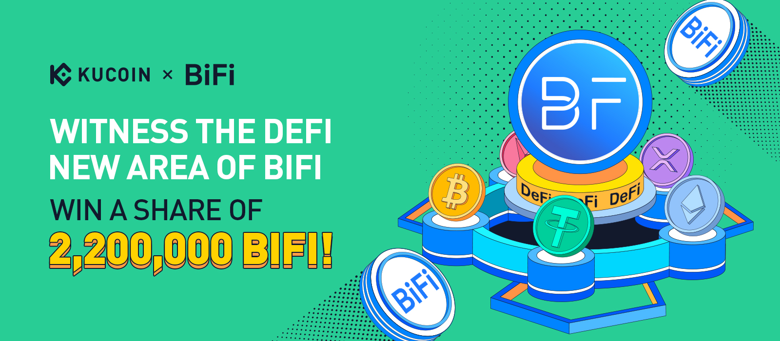 为庆祝BiFi(BIFI)登陆KuCoin ,我们将发起一项活动,向符合条件的KuCoin用户免费赠送2,200,000 BIFI(约合33,000美元)的奖池!