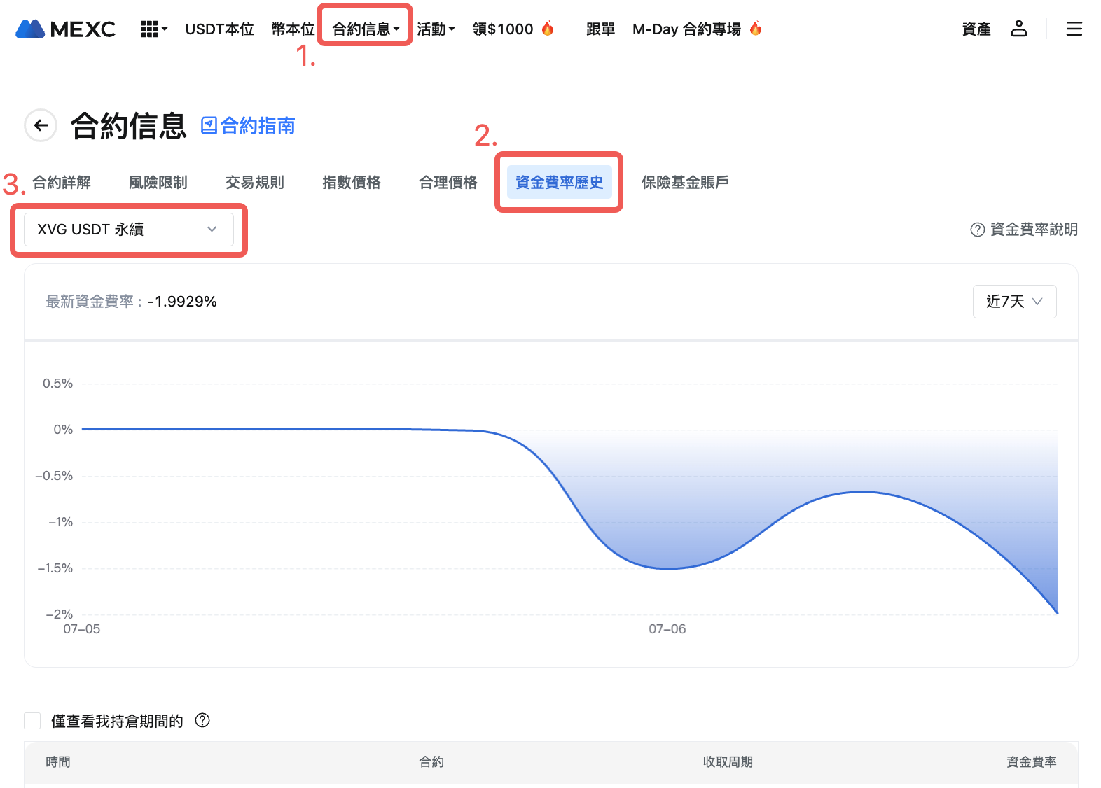 MEXC XVGUSDT U本位合约,资金费率结算频率调整通知(7/6)