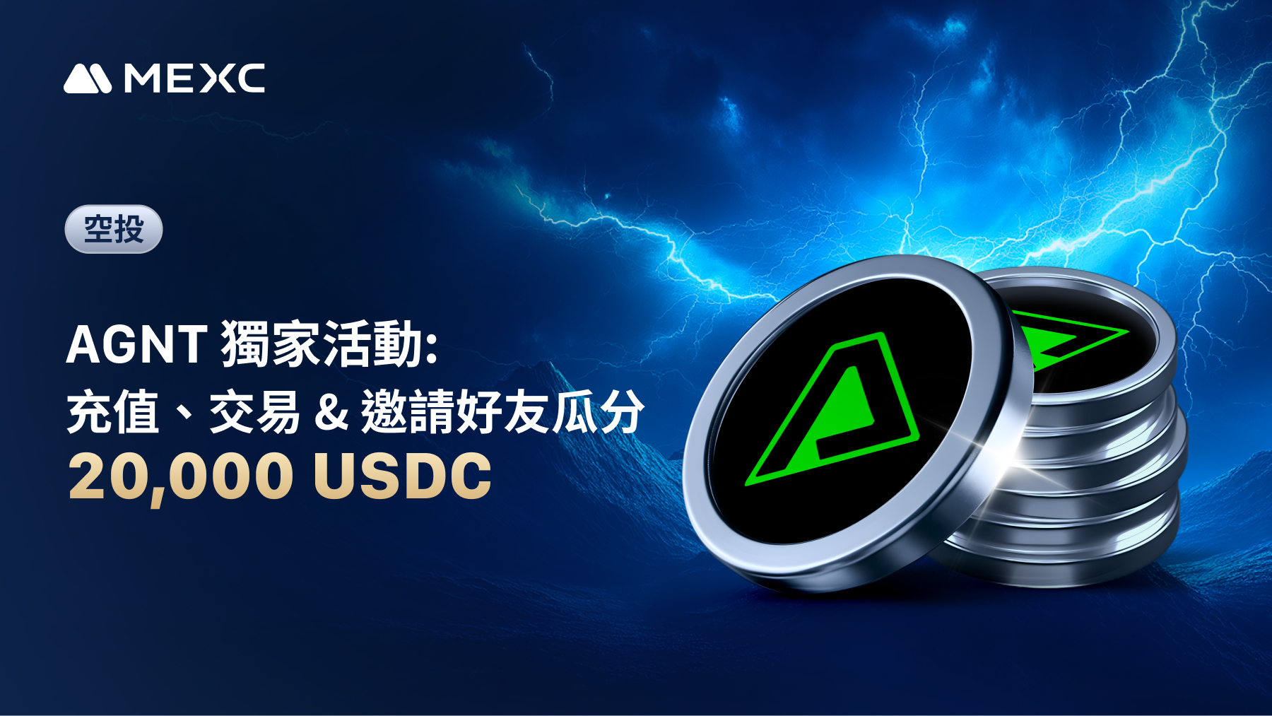 MEXC 诚邀您参与 AGNT 特别活动,把握瓜分 20,000 USDC 奖池的机会——只需充值、交易,并邀请新用户,即可参与!