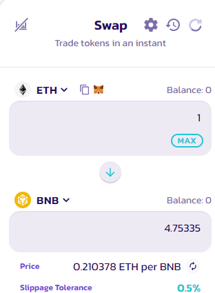 - 第 2 步:在 DEX、非 KYC CEX 上将 BTC 或 ETH 兑换成 BNB。