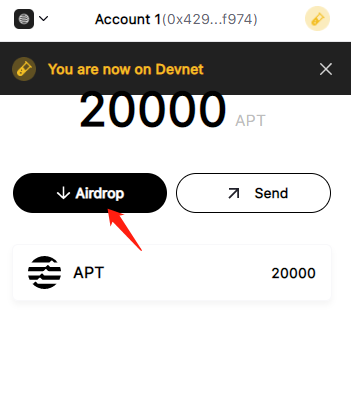 - 第二步:点击Martian钱包上的“Airdrop”按钮,领取一些“APT”测试代币。